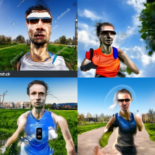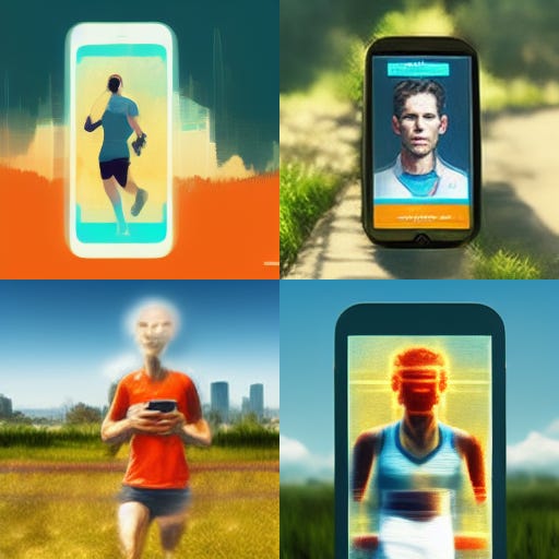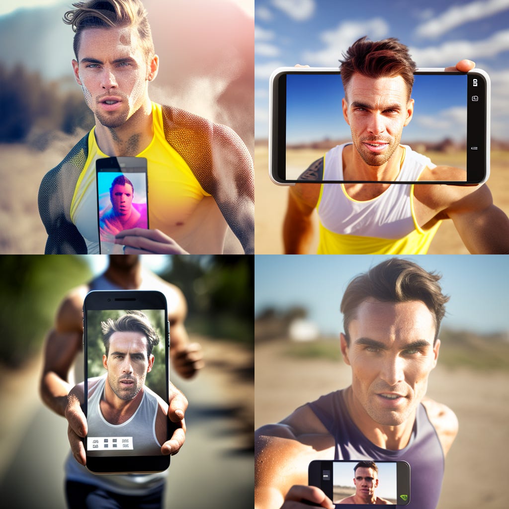 Prompt này mình thể hiện nhiều đối tượng khác nhau người chạy, điện thoại, mô tả màn hình, và biểu hiện khuôn mặt, cũng như khung cảnh. Như vậy có thể đánh giá được sự tiến hóa của MJ qua thời gian.
